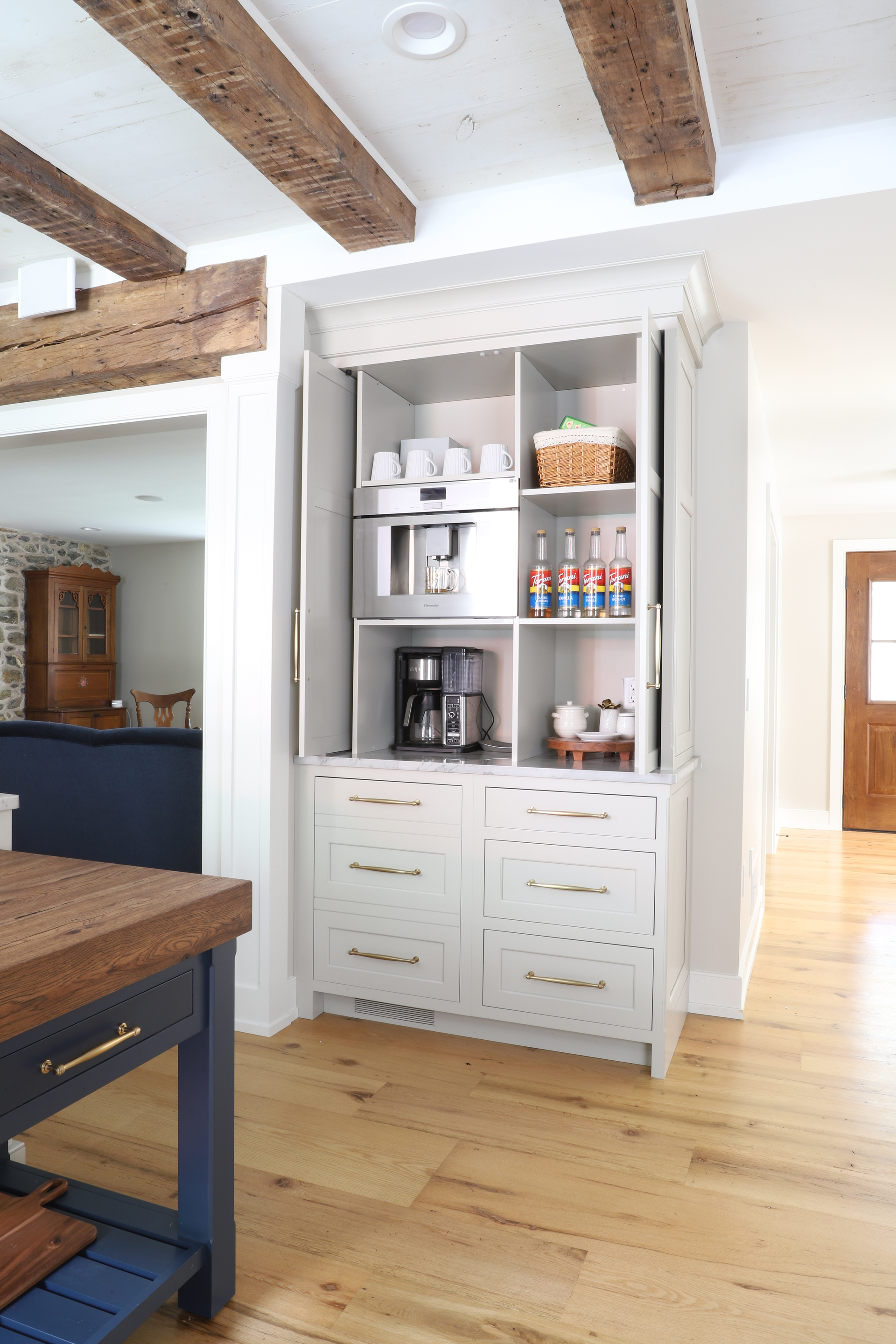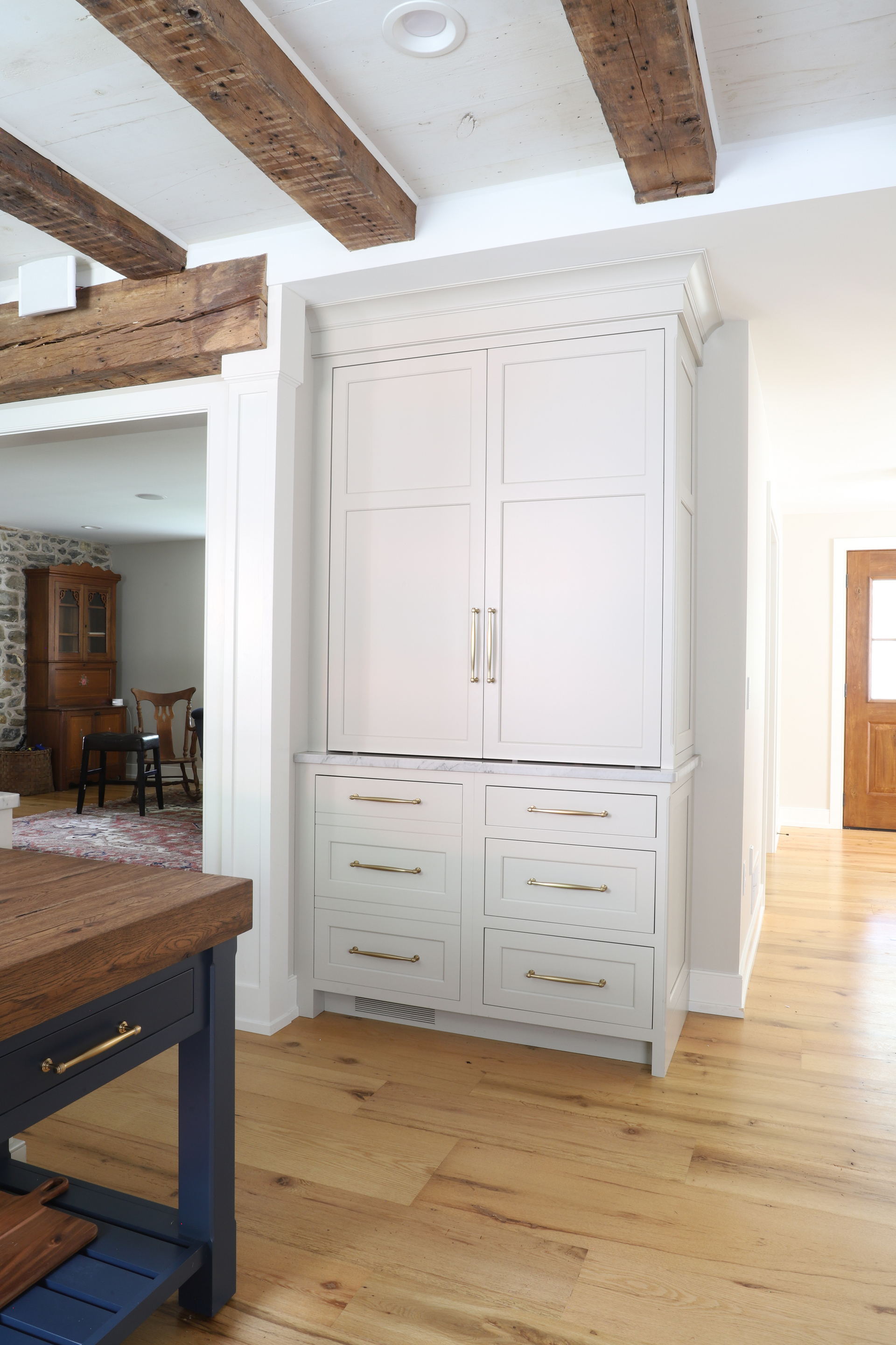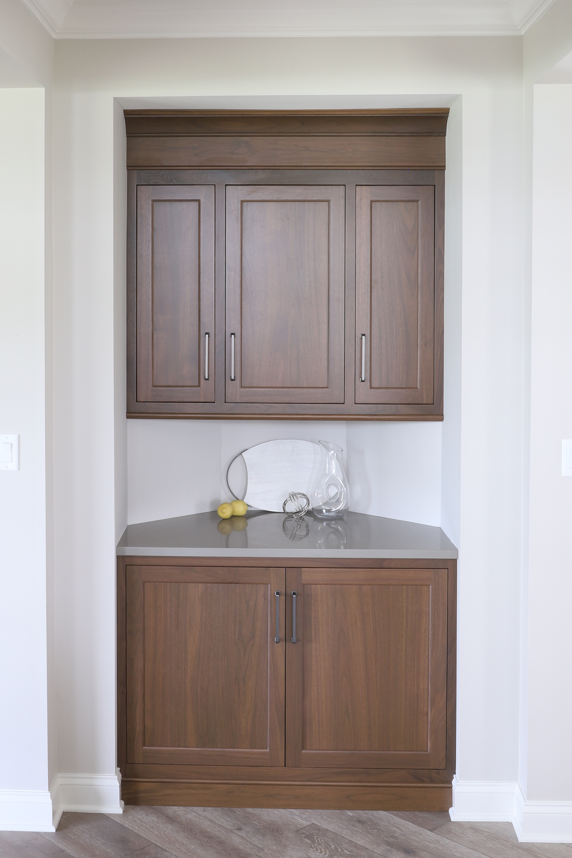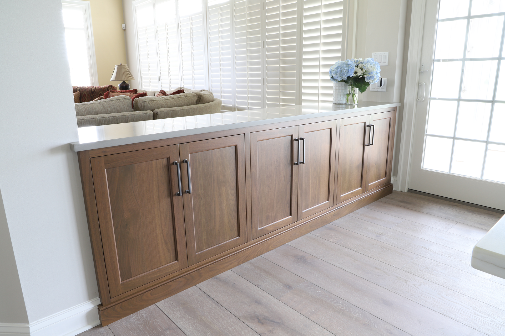 The kitchen is often the hub of the home. This extra set of cabinets provides more workspace and storage while creating a seamless transition into the rest of the home.