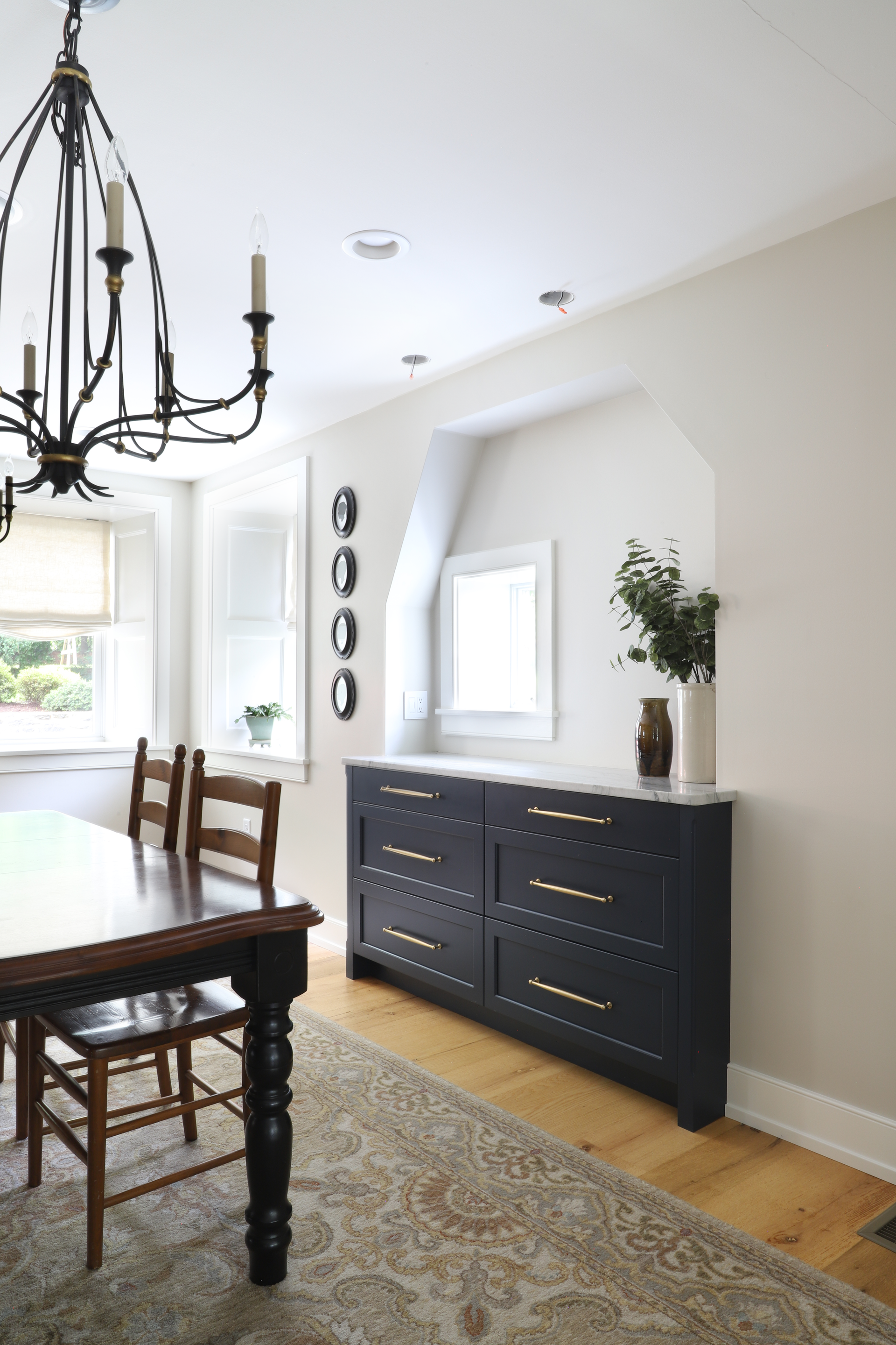This space was an absolute joy to design. Modern cabinetry and appliances mix beautifully with original features of the house like dark wood trim and plenty of other Victorian touches.